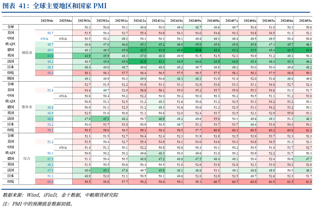 美国 美联储褐皮书 2025年4月24日(周四)02:00,美联储公布经济状况褐皮书,汇总了美联储12个地区联储在过去几周收集到的美国各地经济现状和前景信息,将作为美联储5月6-7日召开的联邦公开市场委员会(FOMC)会议的重要决策参考。其中报告主要内容有: 1)经济活动整体变化不大,但不确定性显著增加;“关税”一词共出现107次,是上一期报告的两倍,“不确定性”相关的表达出现89次;这表明企业对关税政策的担忧情绪显著上升,经济前景的不确定性加剧。 2)物价上涨,企业成本压力增大;虽然一部分企业通过增加关税附加费或缩短定价周期以应对不确定的贸易政策,但依然有部分行业(尤其是消费类)面临成本上升导致的利润压缩。 3)就业市场增长缓慢,企业招聘意愿谨慎;尽管私营企业新增岗位数量有所上升,政府部门以及依赖联邦资金的机构就业人数则出现下降,多个地区表示,企业在招聘方面采取观望态度,暂停或放缓招聘,直到经济前景更加明朗。 4)消费支出放缓,服务业和制造业表现分化;必需品需求依然强劲,但非必需品(如奢侈品、娱乐产品等)需求有下降趋势;不确定性或抑制经济增长,制造业疲弱,但服务业相对稳定。 全球 PMI 2025年4月底,公布全球及各国和地区制造业PMI初值,全球经济整体依然呈现扩张态势,但扩张速度有所放缓,各国家和地区之间、及其经济结构之间的分化愈发明显;全球经济的分化趋势可能受消费信心回落及通胀预期调整的影响,需关注后续政策调整和市场变化。 1)美国:4月美国标普全球制造业PMI初值为50.7,高于预期的49.1,显示制造业扩张加速;服务业PMI初值为51.4,低于预期的52.8,较前值54.4大幅下滑,显示服务业增长放缓;受服务业影响,综合PMI初值为51.2,低于预期的52.2;整体显示经济结构内部出现分化。 2)欧元区:4月欧元区制造业PMI初值为48.7,高于预期的47.5,显示制造业收缩幅度有所收窄;服务业PMI初值为49.7,低于预期的50.5,显示服务业收缩;综合PMI初值为50.1,低于预期的50.3;整体经济复苏面临挑战。 3)德国:4月德国制造业PMI初值为48.0,低于预期的47.6,显示制造业收缩加剧;服务业PMI初值为48.8,低于预期的50.2,显示服务业收缩;综合PMI初值为49.7,低于预期的50.4;整体经济面临较大压力。 4)法国:4月法国制造业PMI初值为48.2,低于预期的48.0,显示制造业收缩;服务业PMI初值为46.8,低于预期的47.7,显示服务业收缩加剧;综合PMI初值为47.3,低于预期的47.8;与德国一样,整体经济面临较大压力。 5)英国:4月英国制造业PMI初值为48.9,低于预期的49.5,显示制造业收缩加剧;服务业PMI初值为51.2,高于预期的50.5,显示服务业扩张;综合PMI初值为50.3,与预期持平;整体经济结构分化明显。 6)日本:4月日本制造业PMI初值为50.5,高于预期的49.5,显示制造业扩张加速;服务业PMI初值为50.8,高于预期的50.0,显示服务业扩张;综合PMI初值为50.7,高于预期的50.0,显示日本整体经济情况相对较好。 7)印度:4月印度制造业PMI初值为52.5,高于预期的51.5,显示制造业扩张加速;服务业PMI初值为55.0,高于预期的53.5,显示服务业繁荣;综合PMI初值为54.2,高于预期的53.0;与日本一样,经济表现相对较好。 ![]() ![]() ![]() ![]() 全球 GDP 2025年4月22日(周二)21:00,IMF发布《世界经济展望》报告,将今明两年的全球增长率预测值分别下调至2.8%和3%(2025年1月前值均为3%),主要是参考预测考虑了美国在今年2月1日至4月4日期间宣布的关税措施以及其他国家采取的反制措施。其中,美国今明两年的GDP增速分别下调至1.4%(前值1.9%)和1.5%(前值1.8%),关税的影响占到0.4个百分点,同时美国2025年通胀预期从2%上调了一个百分点;中国今明两年的GDP增速分别下调至4%(前值4.6%)和4%(前值4.5%),同时中国2025年通胀预期喜爱套了0.8个百分点。 ![]() ![]() ![]() ——节选自《宏观周报》 作者简介曹姗姗 中粮期货研究院 资深研究员 交易咨询号:Z0013588 ]article_adlist-->风险揭示1. 中粮期货有限公司拥有本报告的版权和其他相关的知识产权。未经中粮期货有限公司许可,任何单位或个人都不得以任何方式修改本报告的部分或者全部内容。如引用、转载、刊发需要注明出处为中粮期货有限公司。违反前述要求的,本公司将保留追究其相关法律责任的权力。 2. 本策略观点系研究员依据掌握的资料做出,因条件所限实际结果可能有很大不同。请投资者务必独立进行交易决策。公司不对交易结果做任何保证。 3. 市场具有不确定性,过往策略观点的吻合并不保证当前策略观点的正确。公司及其他研究员可能发表与本策略观点不同的意见。 4. 在法律范围内,公司或关联机构可能会就涉及的品种进行交易,或可能为其他公司交易提供服务。 ]article_adlist-->(转自:中粮期货纵观期市)提供资金炒股 ![]() |