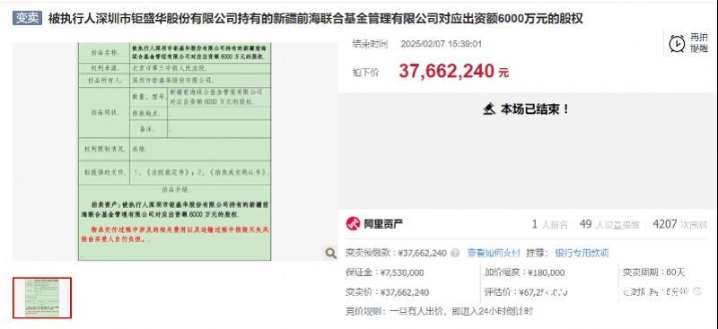 上海证券低价接盘前海联合基金30%股权 期货一倍杠杆配资 本文自南都·湾财社。 采写 | 南都·湾财社记者 罗曼瑜 编辑 | 李美钰 近日,被执行人深圳钜盛华股份有限公司持有的新疆前海联合基金管理有限公司(以下简称“前海联合基金”)30%的股权,在经历了五次挂牌、四次流拍后,最终由上海证券以3766.22万元的价格成功竞得。这一价格较评估价6725.4万元折价44%,堪称“骨折价”交易。 五次拍卖终成交 前海联合基金股权“马拉松式”易主 此次股权拍卖的历程可谓一波三折。自2024年3月初首次挂牌拍卖以来,前海联合基金30%的股权经历了四次流拍,才在第五次拍卖中成功找到买家。 公开信息显示,首次拍卖于2024年3月4日进行,起拍价为4707.78万元,但最终因“案外人对拍卖财产提出确有理由的异议”而被撤回。同年7月12日,第二次拍卖启动,但同样因无人出价而流拍。 2024年8月23日,第三次拍卖吸引了两位竞拍者出价,最终由深圳粤商物流有限公司以3784.224万元的价格竞得该股权。然而,就在市场以为此次股权交易即将尘埃落定之时,粤商物流却因未支付尾款,导致拍卖失败,交易未能履行。同年10月30日,第四次拍卖再度因无人出价而流拍。 2025年2月,前海联合基金30%的股权第五次被挂网拍卖。这一次,起拍价降为3766.22万元,较最初的评估价6725.4万元折价了44%。幸运的是,这一次终于有了买家。2025年2月7日,上海证券在公开竞价中以最高应价胜出,成功竞得该部分股权。此次拍卖由1人报名,1次出价,总共获得4207次围观。若后续监管审批进展顺利,上海证券将取代钜盛华成为前海联合基金的第一大股东,终结“宝能系”对该基金公司的控制。 值得注意的是,前海联合基金30%股权的拍卖并非“宝能系”旗下资产的个例,而是其资产变现的缩影。近年来,随着“宝能系”资金链问题的逐渐暴露,其旗下多个资产陆续被摆上拍卖台。“宝能系”的实际控制人姚振华,近年来在资本市场动作频频,通过旗下公司钜盛华等持有或控股多家上市公司和金融机构。然而,随着“宝能系”资金链的紧张,其旗下资产开始频繁遭遇司法拍卖。除了前海联合基金的股权外,“宝能系”旗下的其他资产如观致汽车、中炬高新等也先后被摆上拍卖台。 从高光到低谷 前海联合基金管理规模断崖式下滑 公开资料显示,前海联合基金成立于2015年8月,注册资本金为2亿元,是证监会批准成立的国内第99家基金管理公司。天眼查数据显示,前海联合基金五位股东分别为深圳市钜盛华股份有限公司、粤商物流、深圳市深粤控股股份有限公司、凯信恒有限公司、前海人寿保险股份有限公司,分别持股30%、25%、25%、15.1%、4.90%。 从管理规模数据来看,前海联合基金的发展并非一帆风顺。天天基金数据显示,2020年是其发展的高光时刻,该年年末其在管规模达到496.27亿元。此后,却急转直下,在管基金规模持续缩水,截至2024年年底,规模仅剩97.51亿元,管理49只基金,且这些基金以固收类为主。 数据显示,截至2024年三季度末,前海联合基金管理的公募资产为92.17亿元,非货规模为91.58亿元,债券型基金规模为81.59亿元。自2021年9月起,该公司便再无新的基金产品成立。2022年,该公司发行的新疆前海联合中债1—3年国开行指数基金以及前海联合鑫享价值基金,均遭遇募集失败,这也从侧面反映出其在产品发行和市场拓展方面面临的挑战。 中小公募股权频遭冷遇 上海证券入局能否实现“逆袭”? 不过,前海联合基金的拍卖并非孤例。近年来,嘉合基金、东海基金、宝盈基金、上银基金等多家中小基金公司的股权被频频挂牌转让,且多家中小基金也都曾出现股权流拍的情况。前海联合基金股权拍卖遭遇的困难,正是当下中小规模公募基金发展困境的一个缩影。黑崎资本首席战略官陈兴文在接受媒体采访时指出,行业马太效应加剧,中小基金公司面临着牌照价值缩水、盈利能力不足等问题,导致市场信心不足,竞争白热化,中小基金股权吸引力下降。 不过,上海证券接手前海联合基金 30% 股权或许能为其带来新的生机。据陈兴文分析,上海证券作为券商股东,有望通过资源整合与战略协同,提升前海联合基金的市场竞争力。不过两者在整合过程中也存在潜在风险,若上海证券仅作财务投资而非战略投入,可能难以改变前海联合基金投研团队薄弱、产品同质化的现状。另外,券商与基金公司的管理文化差异,可能导致决策效率下降,需警惕“形合神离”的治理困境。晨星(中国)分析师代景霞同样指出,中小公募需通过引入战略股东、优化治理结构实现差异化突围。 此次上海证券竞得前海联合基金 30% 股权事件,不仅为前海联合基金的未来发展带来了新的变数,也为中小公募基金行业的发展提供了新的思考。未来,前海联合基金能否在新股东的支持下走出困境期货一倍杠杆配资,实现破局发展,这场“逆袭”仍需时间检验。 |
